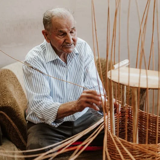 Jest ojcem, dziadkiem i pradziadkiem, a jego dom wypełniają ręcznie wyplatane kufry i bieliźniarki – piękne, praktyczne i trwałe. W jego dłoniach wiklina zamienia się w dzieła, które łączą dawną wiejską tradycję z ponadczasową elegancją.