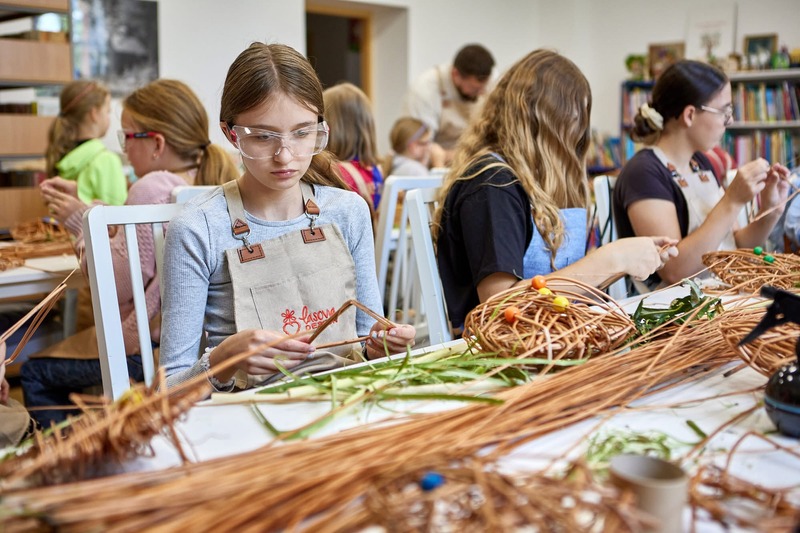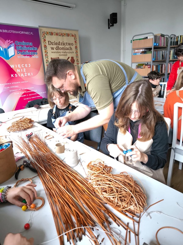 W ramach projektu realizowanego w gminie Horyniec-Zdrój prowadziliśmy warsztaty wikliniarskie, podczas których dzieci i młodzież poznawały podstawowe techniki plecionkarskie i samodzielnie tworzyły własne wyroby. Nasza obecność była częścią większego cyklu zajęć tradycyjnych rzemiosł, którego celem jest ocalanie dawnych umiejętności i przekazywanie ich młodszym pokoleniom.